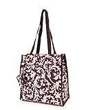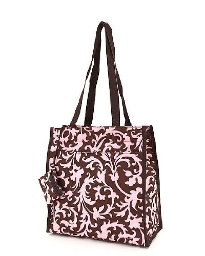 Look chic and be good to the environment using this beautiful damask print reusable shopping tote with great features such as zipper closure, included coin purse, front velcro pocket, rear zipper pocket, and zippered pockets inside. Fashionable and functional too!