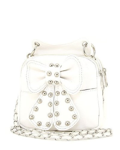 White Small Designer Inspired Bow Tie Messenger Handbag Review