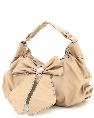 Beige Large Designer Inspired Studded Bow Tie Hobo Bag Review