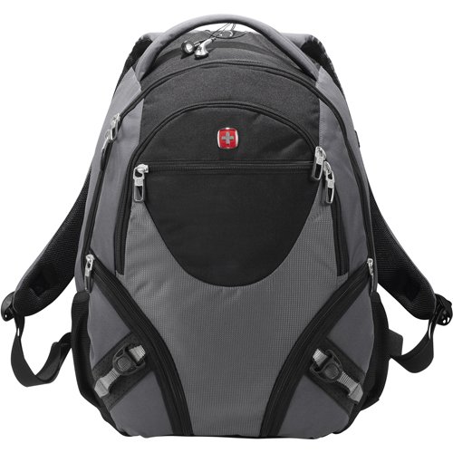 Materials: 900d PolyCanvas with Dobby Nylon Accents Size: H 19" x W 4.5" x L 13" Features: Zippered main compartment with interior media pocket and earbud port access Two front zippered accessory pockets (one with full organization and removable key fob) Additional side accessory and mesh pockets Padded back panel and adjustable shoulder straps made of Wenger's Airflow moisture wicking mesh Carry handle Signature Wenger lining and hardware Colors: Black